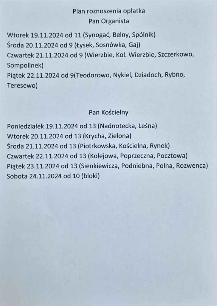 Harmonogram roznoszenia opłatka